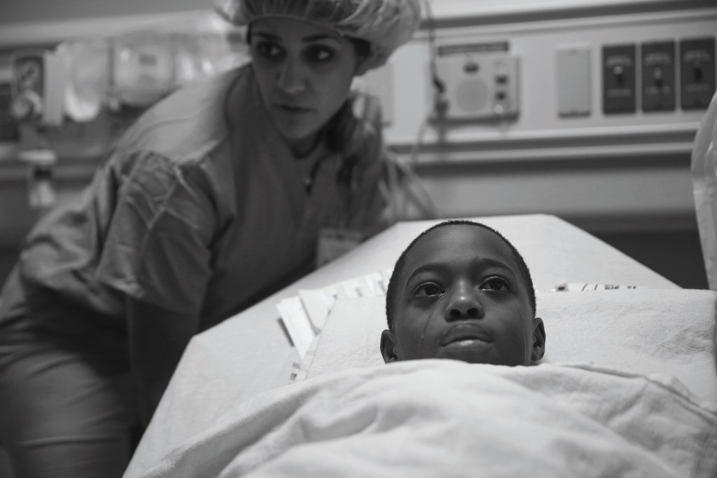 In Chicago 2016, Tavon Tanner was shot at his home, leaving a bullet lodged in his body for months. It had only been 2 months since Tavon had been shot when he met Chicago Tribune photographer E. Jason Wambsgans. Wambsgans at the time been working on a series of portraits containing children who had been shot in 2016. When the year came to an end there were 24 reported shooting where the target was under 12 years of age. The photo that first caught my attention was of Tavon lifting his shirt. In lifting his shirt Tavon reveals a large scar that goes from below the pant line to his sternum. This scar is from Tavon’s surgery to remove the bullet, which wasn’t taken out until more than 2 months after the shooting. The photo is in black and white creating a dark and eerie atmosphere, there is nothing in the background, and his forehead is cut off the photo. The beauty of this, in my opinion, is without a caption or knowing what happened you can still infer a lot about this photo. When Tavon goes to have the bullet removed E. Jason Wambsgans captures Tavon with a tear running down his face at the hospital as he is prepped to go into the operating room. This photo is also captured in black and white. Tavon is clearly the main focus but, we are able to see in the background a nurse a little bit blurred, no one is smiling, and Tavon looks scared. Tavon was even brave enough and asked to see the bullet that had been lodged inside him. Captured is a photo of the bullet being held in an evidence bag by an officer since the police needed it for evidence. Mary Schumich covered some of the writing for this story in the hope that people could see what happens to a family when a child is shot. Tavon and his mom Mellanie were one of the only people Schumich could get to talk but, gang affiliations kept many from talking. Mellanie stated that “Before, everything was in order. Since Tavon was shot, I’m completely lost.” She described how she felt at that moment in time saying how she remembered the bullets “seemed to come from nowhere, like the crack of thunder.” Wambsgans and Schumich being able to capture not only photographs of the aftermath and the pain that the family affected suffered but, they were able to talk to them one on one and then express on their behalf to others. This is a largely known problem in the US but, many while knowing it is going on do not see the months of recovery and the mental and physical trauma it put the whole family through. From capturing the scar going all the way down his stomach to the photo of him going in for surgery. The fear and sadness in his face are something a child that young should never have to experience and thanks to Tavon we all now are aware not only of the issue but, the outcome and recovery that this problem creates.